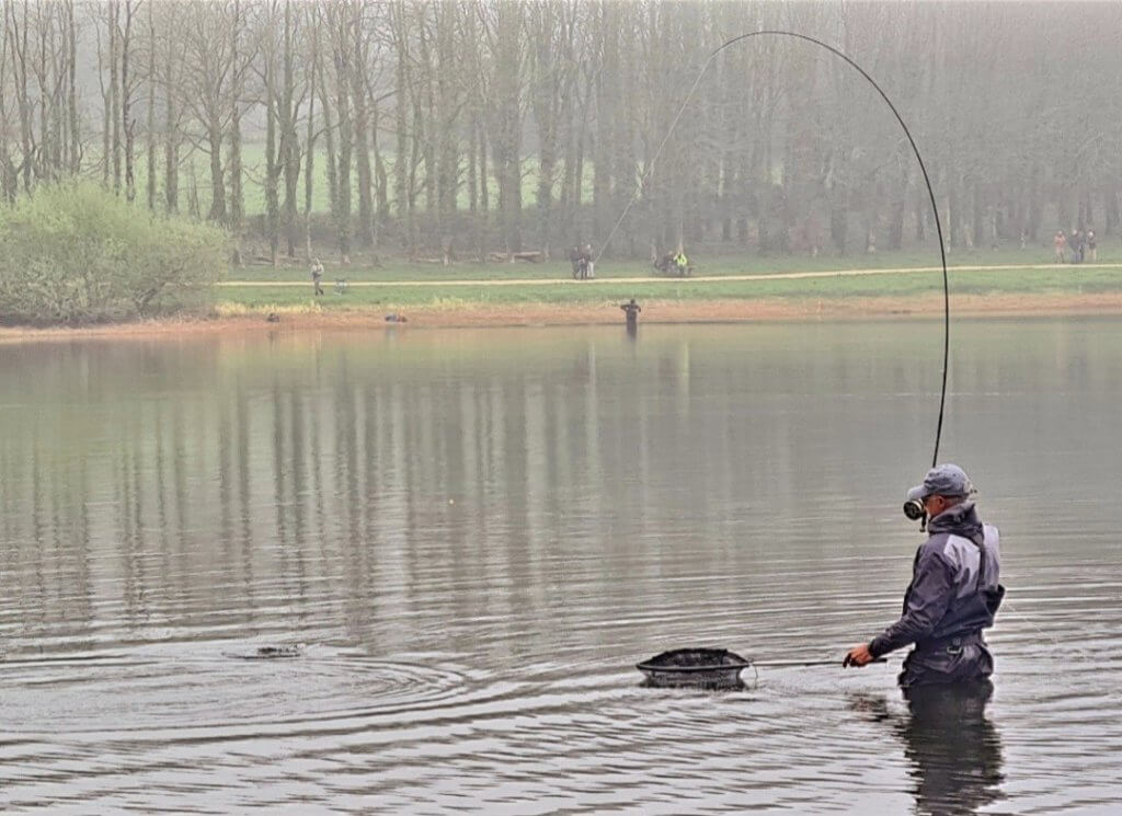 Ces conditions fournissent aussi une situation extrêmement favorable pour la pêche sur le lac du Drennec. Les trois types de truites....arcs de remise récente, arcs ensauvagées et farios (on rappellera que les farios sont en no kill) ... étaient en activité.